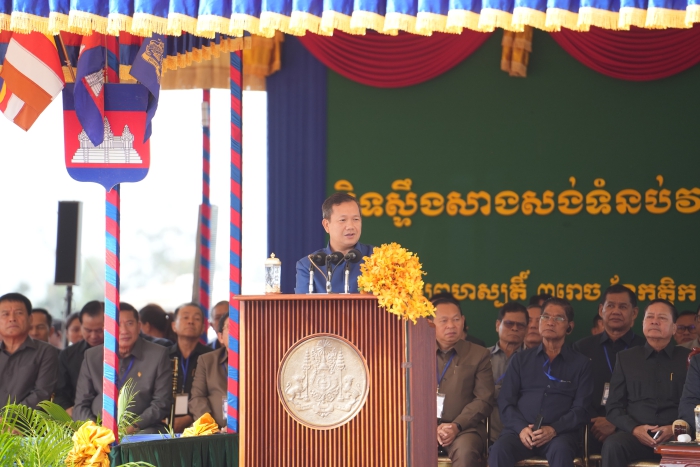 柬埔寨首相洪瑪奈向集團(tuán)下屬企業(yè)國機(jī)重型裝備集團(tuán)股份有限公司董事長韓曉軍交付截流石。柬埔寨能源與礦產(chǎn)部部長高拉達(dá)那、柬埔寨國公省省長密杜娜·布通、中國駐柬埔寨大使王文天、中國駐柬使館經(jīng)商處參贊鐘潔等中柬政要,中柬主流媒體與社會各界人士等1800余人,共同見證這一中柬務(wù)實(shí)合作、增進(jìn)民生福祉項(xiàng)目建設(shè)取得突破性進(jìn)展的歷史時刻。